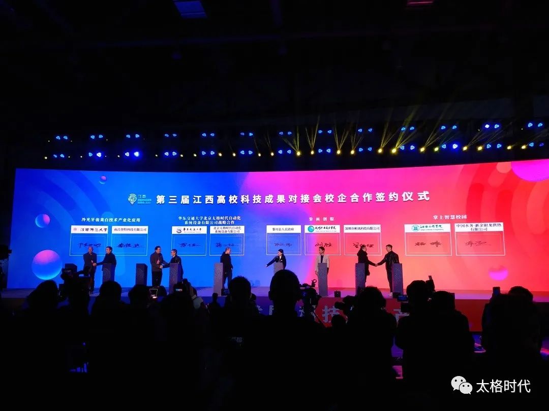 12月11日-12日,第三屆江西高??萍汲晒麑?duì)接會(huì)(以下簡(jiǎn)稱“對(duì)接會(huì)”)在南昌綠地國(guó)際博覽中心A3A4號(hào)館盛大舉行。副總經(jīng)理蔣士林代表北京太格時(shí)代自動(dòng)化系統(tǒng)設(shè)備有限公司(以下簡(jiǎn)稱“我司”)參加了此次對(duì)接會(huì)。