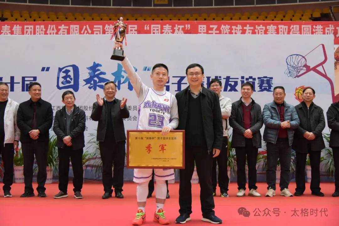 3月8日,備受矚目的2024年第十屆“國泰杯”男子籃球友誼賽在江西宜春市體育中心籃球館落下帷幕。集團(tuán)黨委書記、董事長熊旭晴,黨委委員、副總經(jīng)理黃蘇錦、龍江、吳榮高,工會主席李華才,太格時代黨支部書記、董事長劉仕兵及各參賽兄弟單位主要領(lǐng)導(dǎo)出席閉幕式并為獲獎隊伍頒獎。